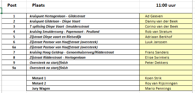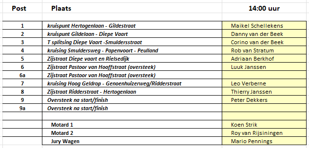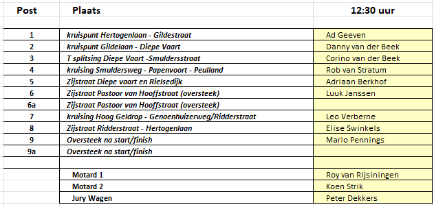 • Meld je een uur voor aanvang van jouw dienst aan bij Denise de Groof, nabij de start/finish aan de Hertogenlaan.